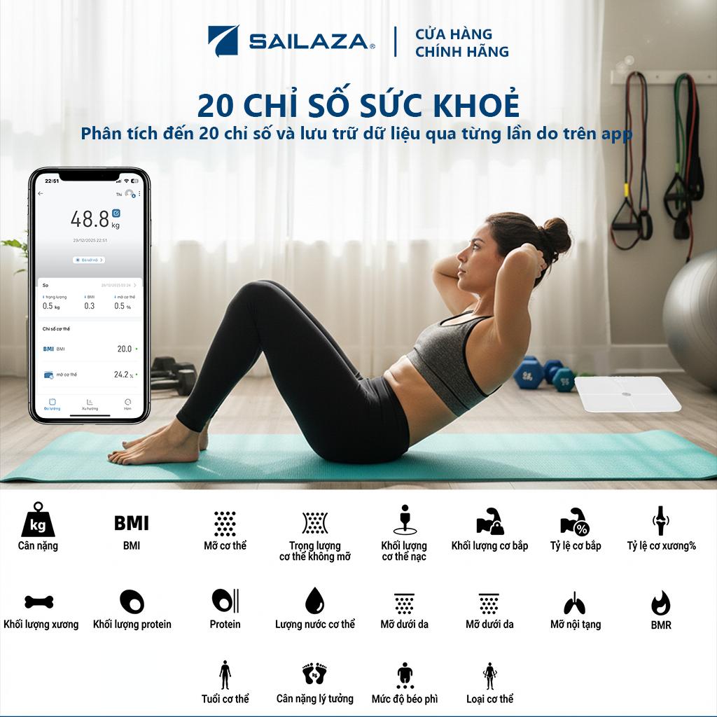 Cân Điện Tử Thông Minh Cao Cấp Chính Hãng Sailaza SA- 1212